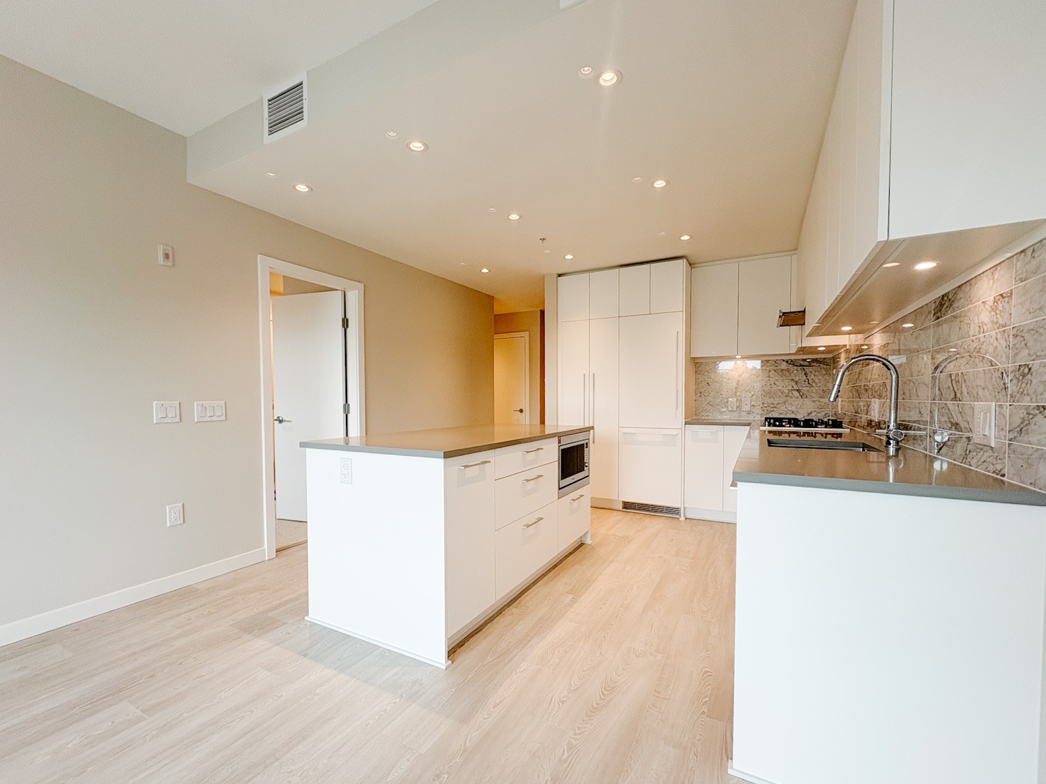 This spacious 1 bedroom + den unit has been beautifully designed with high-end finishings throughout.The open concept kitchen offers ample storage along with a large central island. Additional features include independent heating and cooling, blackout roller shades in the bedroom, luxurious spa-inspired shower and extensive in-suite storage.