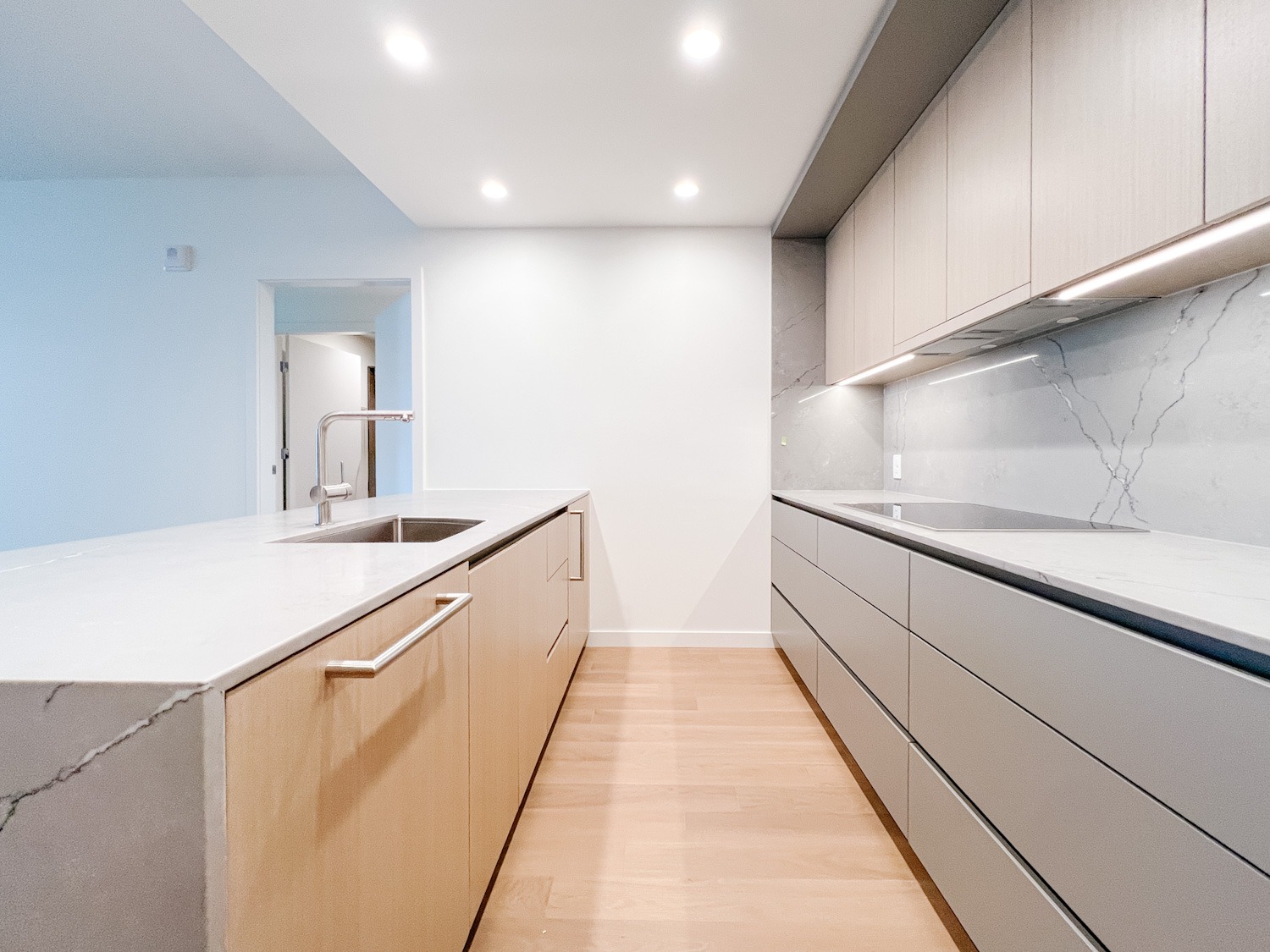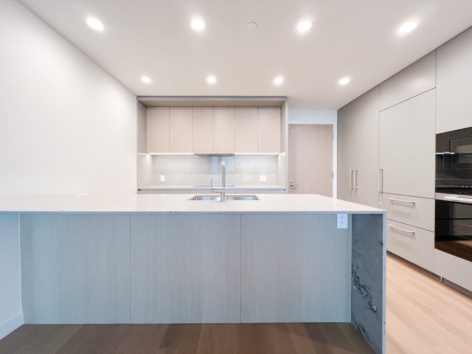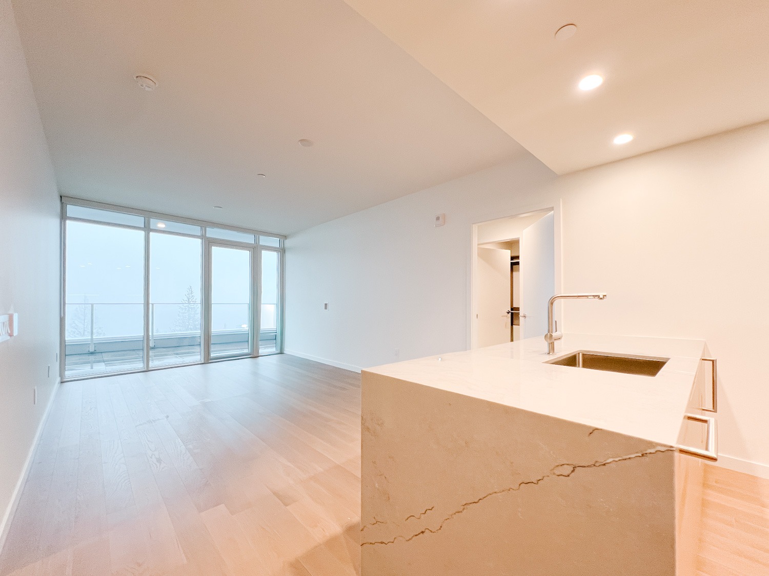 This spacious two-bedroom, two bathroom condo offers approximately 944 sq. ft. of beautiful interior space designed for both comfort and entertaining. Perks include hardwood floors throughout, a stunning kitchen with ample storage, Miele appliances (including a wine fridge!), quartz countertops, in-suite laundry, and endless panoramic views. Bedrooms are located on opposite sides of the unit making this ideal for those needing a bit of privacy whether for visiting guests or work from home opportunities. The unit is air conditioned ensuring year-round comfort, while an extra large 329 square foot private patio extends your living space outdoors in the dryer months – an ideal setting for morning coffee or evening unwinding.