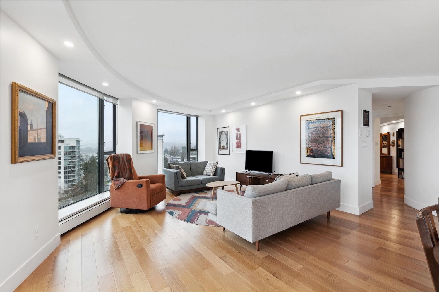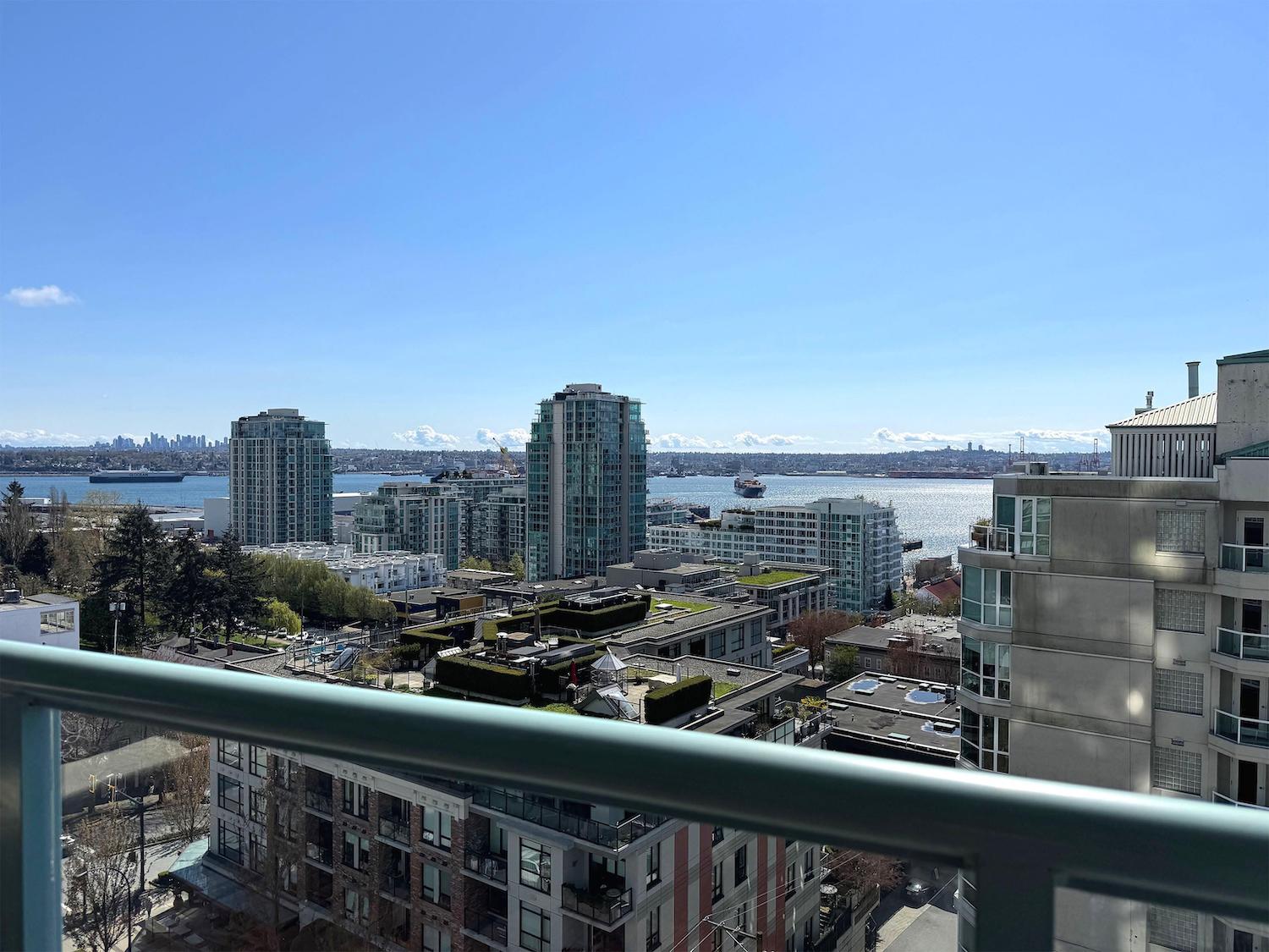 Hop, skip and a jump away from all the action of Lower Lonsdale plus VIEW, VIEW, VIEW! With close to 1200 square feet of open living space, enjoying and entertaining in this 35 year young unit is easy. This spacious even has room for a real dining room table! Other perks include a beautiful updated white kitchen with granite countertops, stainless steel appliances, hardwood floors throughout, in suite laundry, plus AIR CONDITIONING. This incredibly bright south facing unit will tick all the boxes for someone!